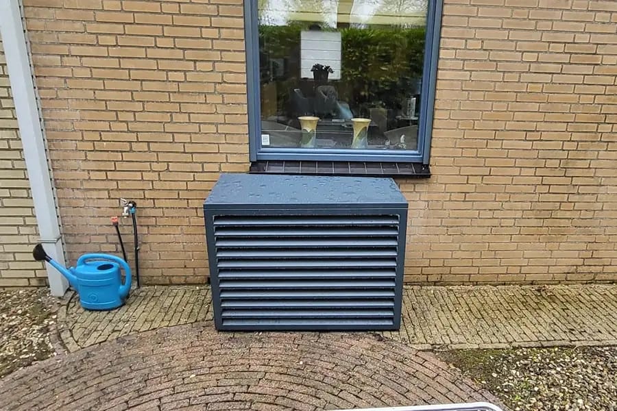 Voor beide units hebben we een aparte voedingskabel naar de meterkast getrokken en ze aangesloten op een eigen groep, om zo optimale efficiëntie en veiligheid te waarborgen. De buitenunit van de airco hebben we voorzien van een stijlvolle airco cover in antraciet RAL 7016, wat zorgt voor een esthetisch verantwoorde afwerking die naadloos aansluit bij de buitenkant van de woning.